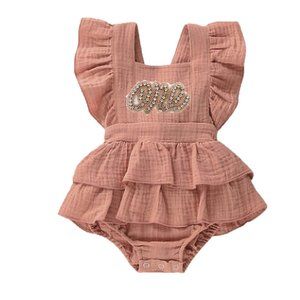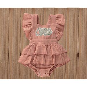 Mocha Ruffles Romper Smash Birthday Outfit Clothes Dusty Brown Dress Fall