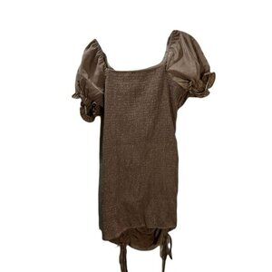 Mocha Slinky Ruched Puff Sleeve Mini Dress Large