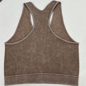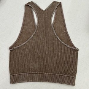 Mocha Stone Washed Cropped Ribbed Racerback Tank