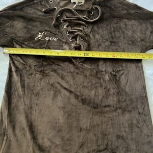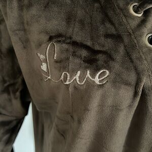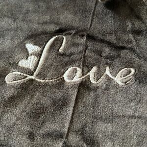 Make an entrance in this beauty! Channel your inner bohemian queen in this tie up front, spaghetti strap shift dress stealing the whats hot top spot, “LOVE” color in light Gold embroidered on the front. Extremely soft Lush fabric, 92% polyester, 8% spandex.
