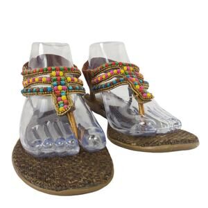 Step out in style with these vibrant beaded sandals. Perfect for adding a pop of color to any outfit.