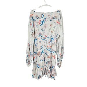 Mochi Sheryn Dress White Embroidered Balloon Sleeve Ruffle Hi-Low Mini Size S