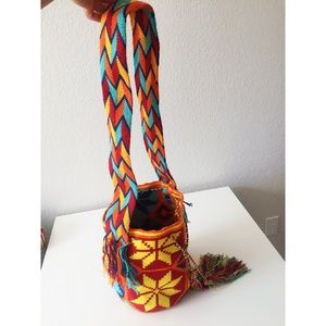 100% cotton and 100% handmade. The Wayuu people are an indigenous tribe of people located in the La Guajira region of Northern Colombia. Every single mochila is different and unique, with intricate tribal designs and colors. Many of the designs represent the natural elements that surround the Wayuu, and what their culture revolves around. It takes 20-30 days to complete just one mochila. No two are the same. Height 10”, diameter 8.5”, strap drop 21”. All measurements are aprox! NEW CONDITION!