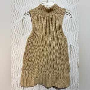 Mock Neck Camel Sleeveless Sweater Wool Blend By Bar III Women’s Size Large