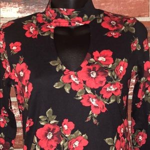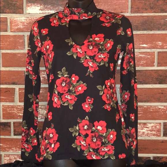 Mock Neck Chocker Long Sleeve Floral Top