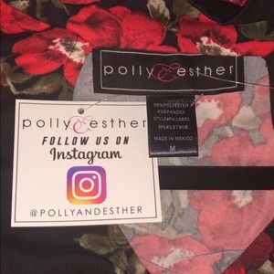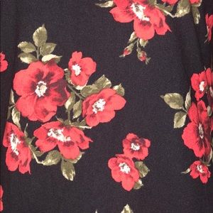 •Black with red flower pattern and dark green leaves