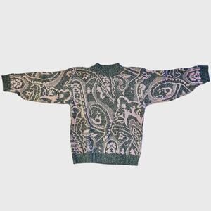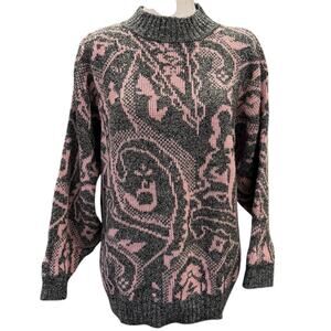 Mock Neck Gray Pink Retro 80's Vintage Sweater Large El Mar California