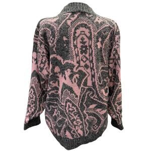 We all love a bold 80's oversized Sweater! This one is a beauty in a bold and artsy abstract random gray and pink design. Perfect for fall and winter with skinny jeans and boots. Great for casual outing, skiwear, outdoor adventure or cozy indoor wear.