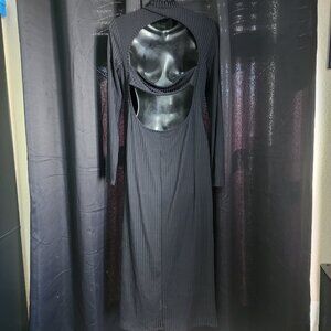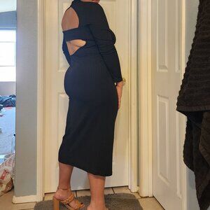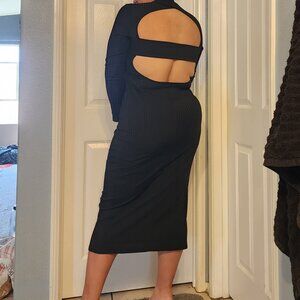 Mock Neck Long Sleeve Midi Dress with Cut Out Back Detail