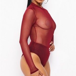 💎💞Mock Neck Mesh Bodysuit (burgundy)