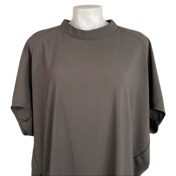 This oversized tunic dress offers a refined, minimalist design with a modern mock neck. Perfect for a polished, relaxed aesthetic in professional settings.