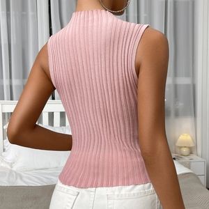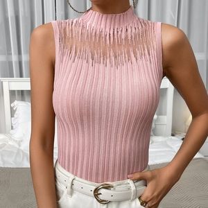 Infuse your outfit with a blend of elegance and edginess by wearing this Pink Mock Neck Ribbed Knit Tank. The mock neck design adds a sleek and modern touch, while the ribbed knit fabric offers a comfortable and figure-flattering fit. The sheer distressed chest detailing introduces a hint of allure and a touch of uniqueness. Pair this tank with high-waisted jeans or a skirt for a stylish and fashion-forward look, perfect for a night out or a casual day with friends.