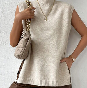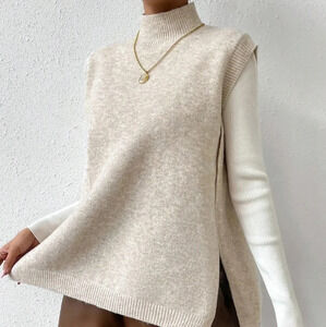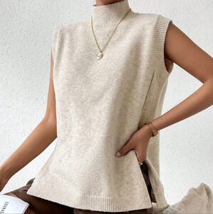 Mock Neck Split Hem Sweater Vest