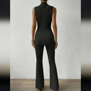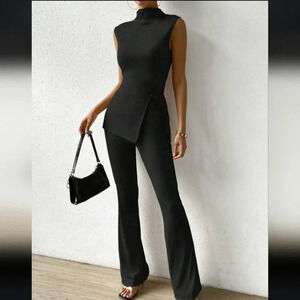 Mock Neck Split Hem Tank Top & Flare Leg Pants