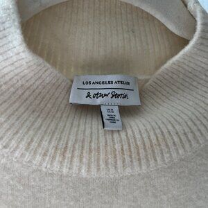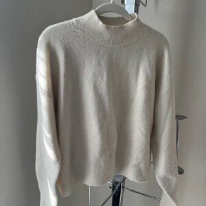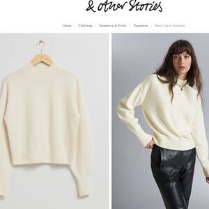 Mock-neck knit sweater with dropped shoulders and a straight silhouette.
