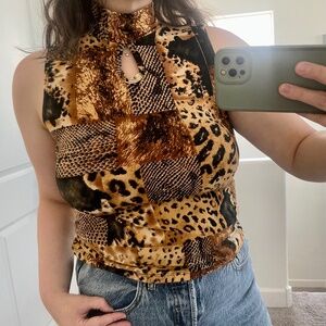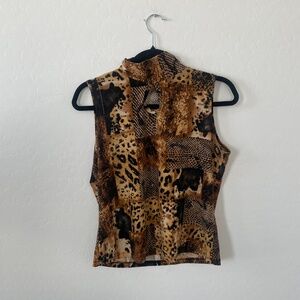 Mock Neck Turtleneck Cutout Leopard Cheetah Cat Animal Print Trendy Chic Blouse