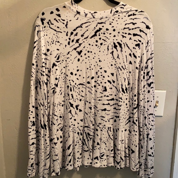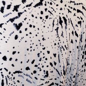 White cotton mock turtle neck with blue speckle pattern