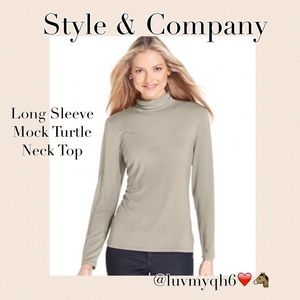Super-soft light fabric and a classic cut. This Style & Co. Top looks great on its own or layered with sweaters, blazers and more. Mock turtleneck collar, Pullover styling, Long sleeves, Color: Natural Heather, Soft Modal®-blend knit fabric, Easy fit, Hits at hip. Generous sizing; made of Modal®/spandex, Machine washable. Size Medium. NEW!