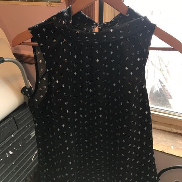 No zipper just 3 hooks. Like New, white mini star? Floral? Print. Sleeveless. Good for under blazer.