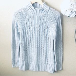 NWT Daisy Fuentes Mock neck Turtleneck Sweater. Beautiful soft grey, blue. Vertical knit detailing
