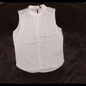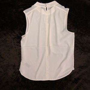 This lovely ivory mock neck top is perfect on its own or with a cardigan or jacket. 2 button neck closure on back of shirt. An extra button sewn on inside tag of shirt.