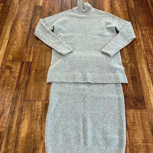 Halogen mock turtleneck sweater with matching sweater knit pencil skirt from Nordstrom. The mock neck sweater is an XS (oversized) and the skirt is a S. Fabric very soft. Worn twice. Great cond. Color is a marled gray & black.
