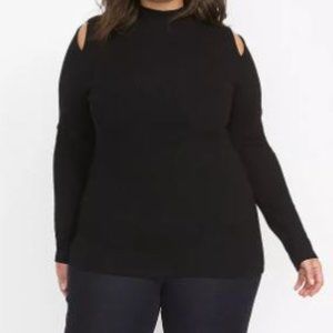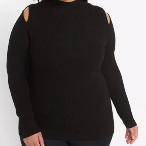 Black Mock-Neck Ribbed Sweater with Cutouts