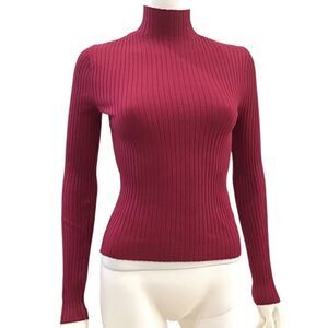 Super cute ribbed, long sleeve, mockneck pullover in beautiful berry color, perfect for fall. 70% viscose, 30% polymide. Chest 32” (stretched), Length 21”.