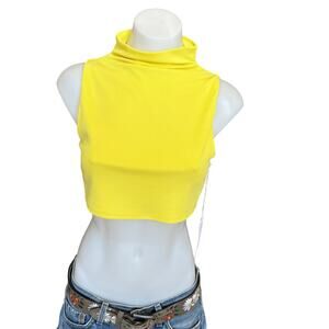 Mockneck Yellow Crop Top LARGE Swank Sleveless Bodycon Designer Revolve $148 NEW