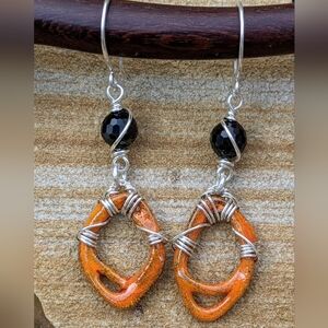 Beneath Each Tourmaline, A Pumpkin Orange Enameled Copper Hoop Is Decorated With A Unique Textured Wrap Which Is Also Done Using Solid Sterling Silver.