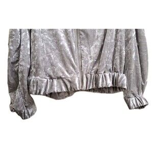 Mod Black Label Velour Zipper Jacket Women's Size L Silver Gray Long Sleeve Top