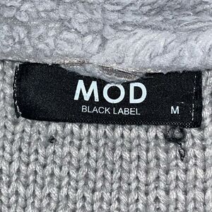 Mod Black Label Womens Medium Suede Front Cardigan Sweater Gray Faux Fur Long