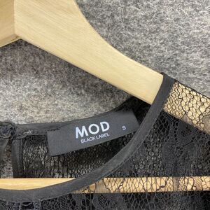 Mod Blouse Women S Small Black Lined Crochet Round Neck Short Sleeve Hook & Eye