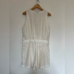 New with tags white romper from Mod Cloth. Textured fabric and buttoned wrap closure makes for easy on and off. Also features pockets!
