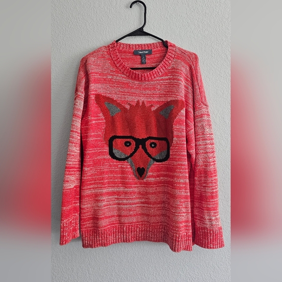 Worn once, like new. Stay cozy and stylish with this trendy fox graphic sweater. Featuring a vibrant red color, it's perfect for adding a playful touch to your wardrobe.