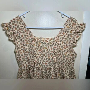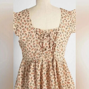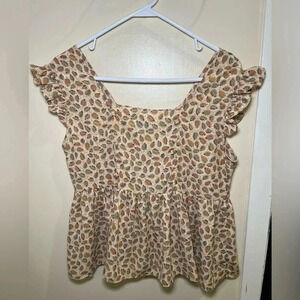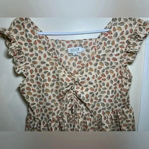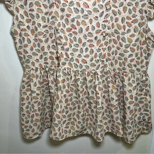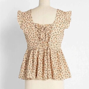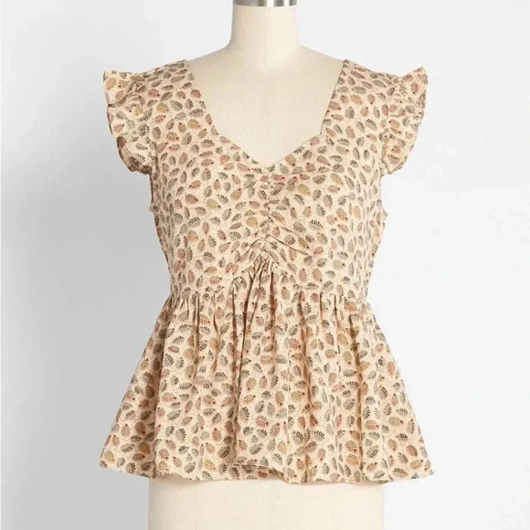 Mod Cloth Molly Bracken Size Large Cream Gold Foil Ruffle Fall V-Neck Blouse
