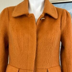 Step out in style with this ModCloth mustard orange fuzzy wool like coat, perfect for adding a retro touch to your wardrobe. Featuring a flattering A-line silhouette, a classic Peter Pan collar, and chic buttoned cuffs, this coat offers both warmth and timeless elegance. The mid-length design and structured fit make it ideal for layering over your favorite fall and winter outtits.