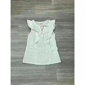 Mod Cloth White Ruffle Sleeveless Tank Top with Stitched Polka Dots Womens S