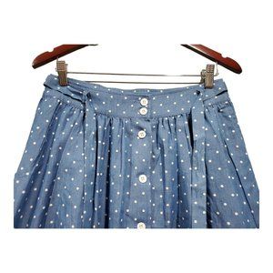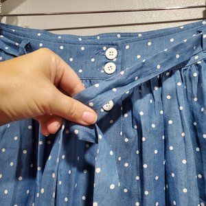 Mod Cloth Women's Blue White Polka Dot Chambray Skirt Button Pocket Casual Sz M