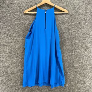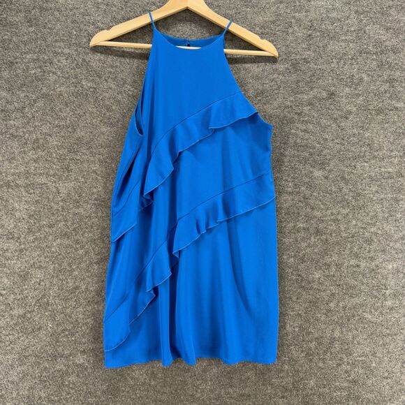 Mod Dress Women S Small Blue Shift Short Sleeveless Lined Hook & Eye Ruffle