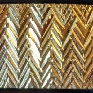Elegance! Shimmery, near-perfect, mid-century atomic-age cut-brass gold-tone bangle with every angle in perfect condition and no sign of wear on the gleaming outside. Weighty, brass or brass-plated to look like gold, a great design that catches and throws light as your arm moves. Size: 2-1/2" inside diameter, 2-5/8" outside diameter, 3/4" wide. Unmarked. The inside is a smooth straight wall with very, very light scattering of pitting, as you can see in the pictures, it does not detract. The outside is slightly domed, in perfect condition, with angled cuts that create a satisfying surface texture (textured but smooth) and look bold yet elegant in a herringbone pattern that has a bit of dimensionality to it. No sign of wear. A great-feeling and great-looking mid-century modern bracelet. Vibrant without being flashy, very comfortable to wear. A unique addition to your vintage jewelry collection or a sound investment if you are just getting started.