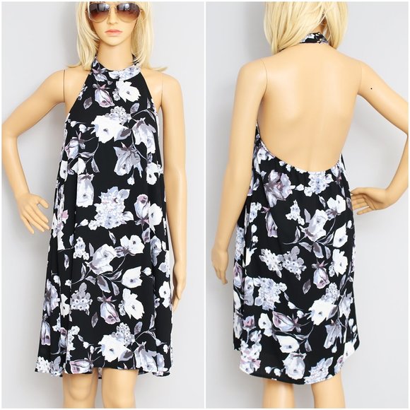 Mod Martin Floral Halter Neck Open Back Dress M