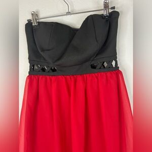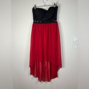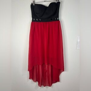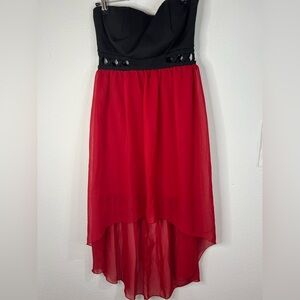 Mod Modele Strapless High Low Dress Small Black Red Chiffon Formal Party Gown