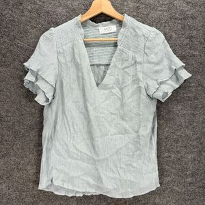 Mod On Trend Blouse Women S Small Gray V-Neck Short Sleeve Lined Pullover Casual