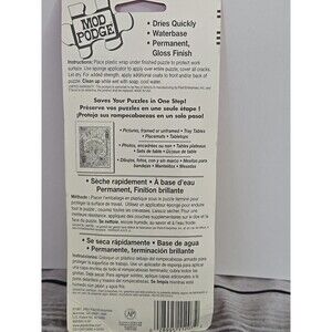 The Mod Podge Puzzle Saver with Foam Brush in clear is a product from Plaid:Craft that helps you simply brush on your puzzle to dry fast. With a sponge brush included and a recommended age range of 11 years and up, this 2oz container is perfect for contemporary jigsaw puzzle enthusiasts. Made in 1991, this puzzle saver is designed to be easy to use and efficient, making it a convenient tool for any puzzle project.