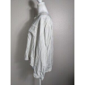 The shirt features a crew neck and button accents, making it a great addition to any wardrobe. It is a size small and petite, which makes it perfect for those who prefer a relaxed fit. This collarless blouse is a must-have for any woman who loves fashion and wants to add a touch of bohemian style to her wardrobe.