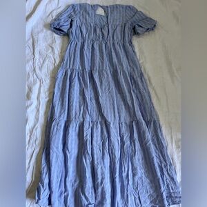 Mod Reef medium sun dress, really cute simple dress, good quality and it’s very flowy and so pretty, it can stretch at the waist. The smallest size is 16 inches and stretched it is 22 inches with a length of 45/46 inches