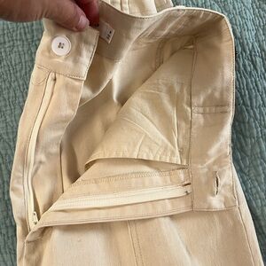 Stylish cream pants with a sleek design. Features a belt for a tailored fit. Perfect for any occasion.