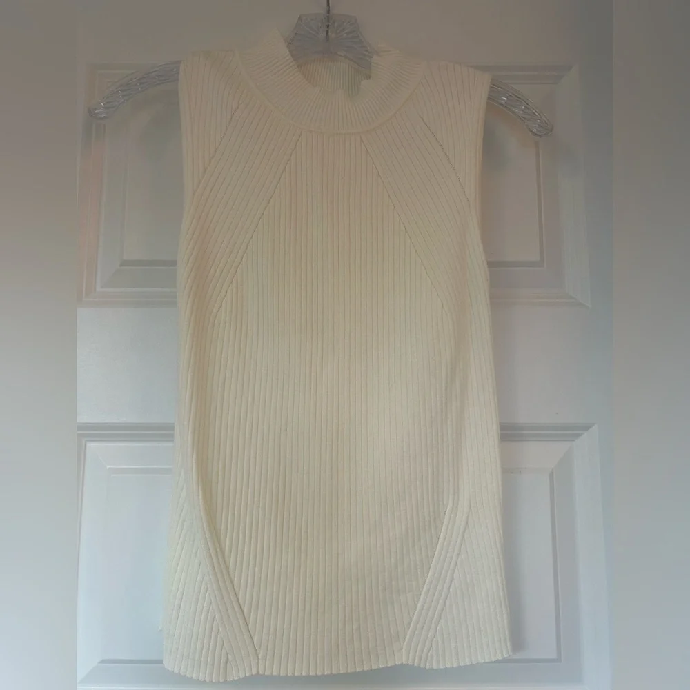 Elegant ribbed design. Sleeveless with a high neckline. Soft and comfortable fabric.