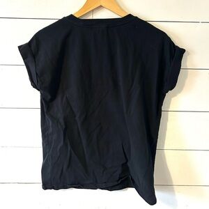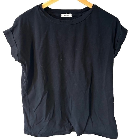 The Marj Top is a closet staple cropped tee with capped sleeves. Available in classic black. Made by MOD REF.
